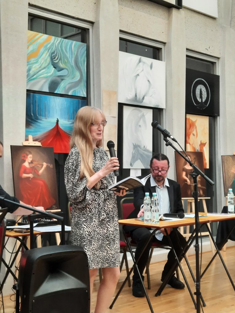 Wydarzeniu towarzyszyła również sztuka wizualna. Artystka Małgorzata Asman zaprezentowała specjalnie przygotowany tryptyk malarski: „Skrzypaczkę”, „Kontrabasistkę” i „Harfistkę”, który był inspirowany tematyką antologii „Poetycka Orkiestra” i symbolicznie spinający całość wydarzenia w jedną artystyczną narrację. Obrazy wprowadziły element harmonii i subtelnego dialogu między słowem a obrazem niczym echo poetyckich dźwięków zamkniętych w farbie i świetle.