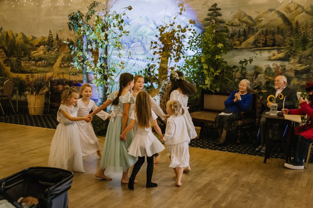 Pierwsza część wydarzenia należała do najmłodszych. Dzieci z grupy teatralnej „Pod Parasolem” zaprezentowały piękny spektakl: lekki i wdzięczny, a jednocześnie mądry. To było spotkanie z poezją w najczystszej postaci: naturalne, chwilami zabawne, chwilami nostalgiczne, ale bez sztuczności. Nie zabrakło oczywiście akcentu z Urszulką i samym Kochanowskim zaprezentowanym jako piękna choreografia młodziutkiej tancerki w otoczeniu rodzeństwa i pogrążonego w rozpaczy ojca. Niejednemu widzowi łza zakręciła się w oku.